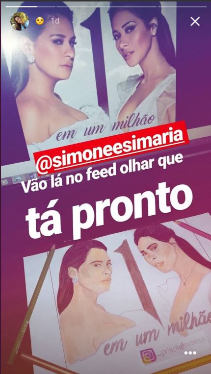 Os vídeos foram postados no Instagram do humorista Carlinhos Maia, que é o mais assistido do Brasil. Juntos, o humorista e Simaria mostraram o desenho de Priscilla, fizeram várias piadas e riram sem parar. Confira: