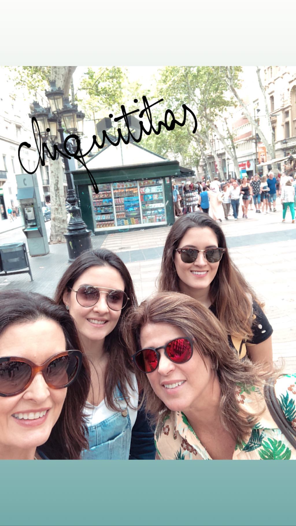 Na outra, Fátima aparece sorridente ao lado das duas filhas. “3/4 de chicas españolas”, escreveu a jovem de 10 anos. E, no stories, uma foto das quatro viajantes com o texto “Chiquititas”.