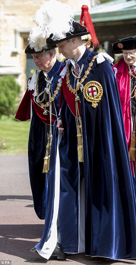 O príncipe Charles, o príncipe William e a duquesa da Cornualha se juntaram à rainha para o evento anual. Ambos, o príncipe Charles e o príncipe William, usavam vestes tradicionais de veludo e bonés adornados com penas de avestruz.