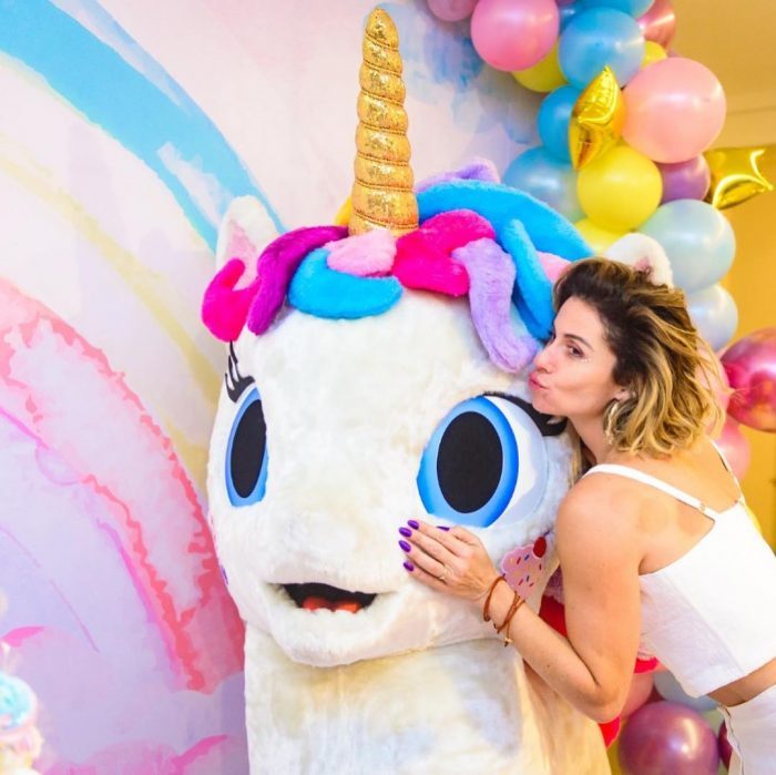 A decoradora também divulgou mais detalhes da festa, afirmando que cada detalhe foi escolhido pelas aniversariantes. “As gêmeas escolheram cada detalhe da festa delas… era unicórnio mas tinha também emojis, era festa do pijama mas tinha também boate e oficina de Slime … assim foi! Com muito amor e carinho”, revelou Lorena Duque.