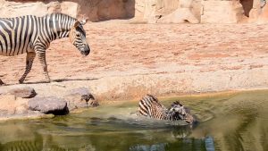 Um bebê zebra que tinha acabado de nascer caiu dentro d’água e quase morreu afogado.