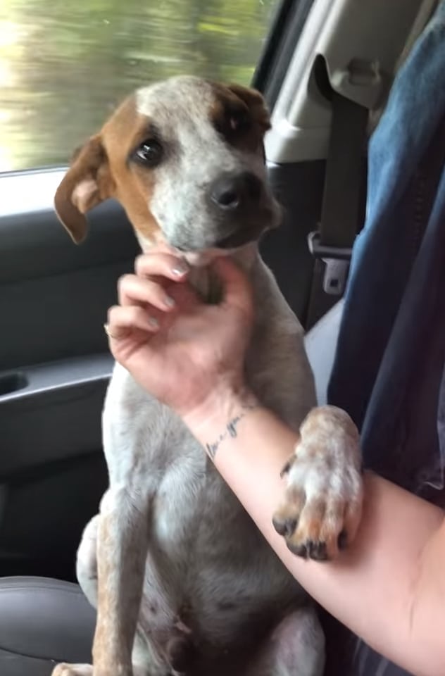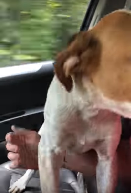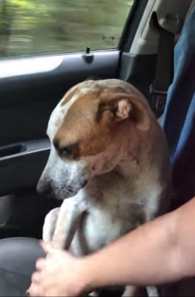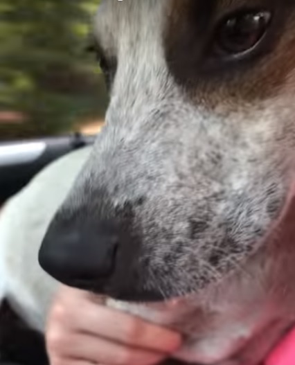 Depois de levá-los em seu carro, o cão no banco da frente fez algo que quebrou seu coração. Em meio a seu sofrimento e dor, o cão começou a acariciar a mulher e procurar sua atenção.