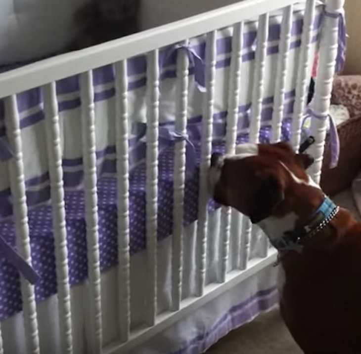 Quando a menina começou a chorar, o cachorrinho se aproximou dela para descobrir o que estava acontecendo dentro do berço. Isso mostrou a preocupação desse pequeno boxer para com o bebê humano. A atenção do cachorrinho mostrou que ambos se darão bem no futuro.