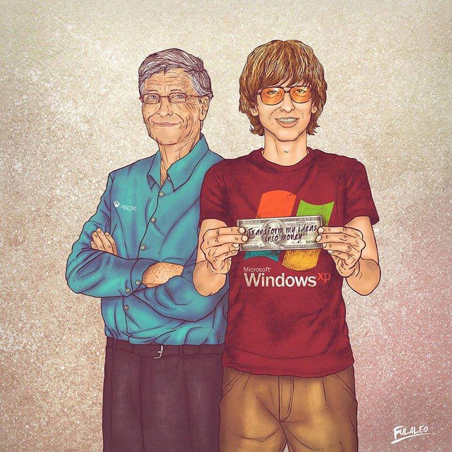 Seguindo uma linha similar, o artista colombiano FulvioObregón, mais conhecido como Fulaleo, encontrou uma forma atemporal de homenagear alguns artistas e celebridades dos anos 80/90. Seu projeto se chama “Yo & mi otro yo” (traduzindo, “Eu e meu outro eu”). No seu projeto, Obregón desenhou famosos como Michael Jackson, Steve Jobs e o ex-Beatle Paul McCartney ao lado de seus “eus jovens”.