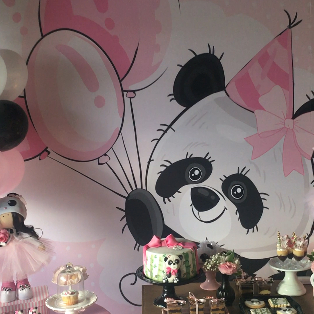 A decoração, assinada por Kátia Fonseca, estava impecável. A festa contou com um grande painel atrás da mesa do bolo, que trazia a imagem de um panda segurando balões e usava um chapéu de aniversário. O tema estava presente em cada detalhe, no bolo, doces, além de bonecas adoráveis com chapéu do urso e os famosos bichinhos de crochê, conhecidos como amigurumi.