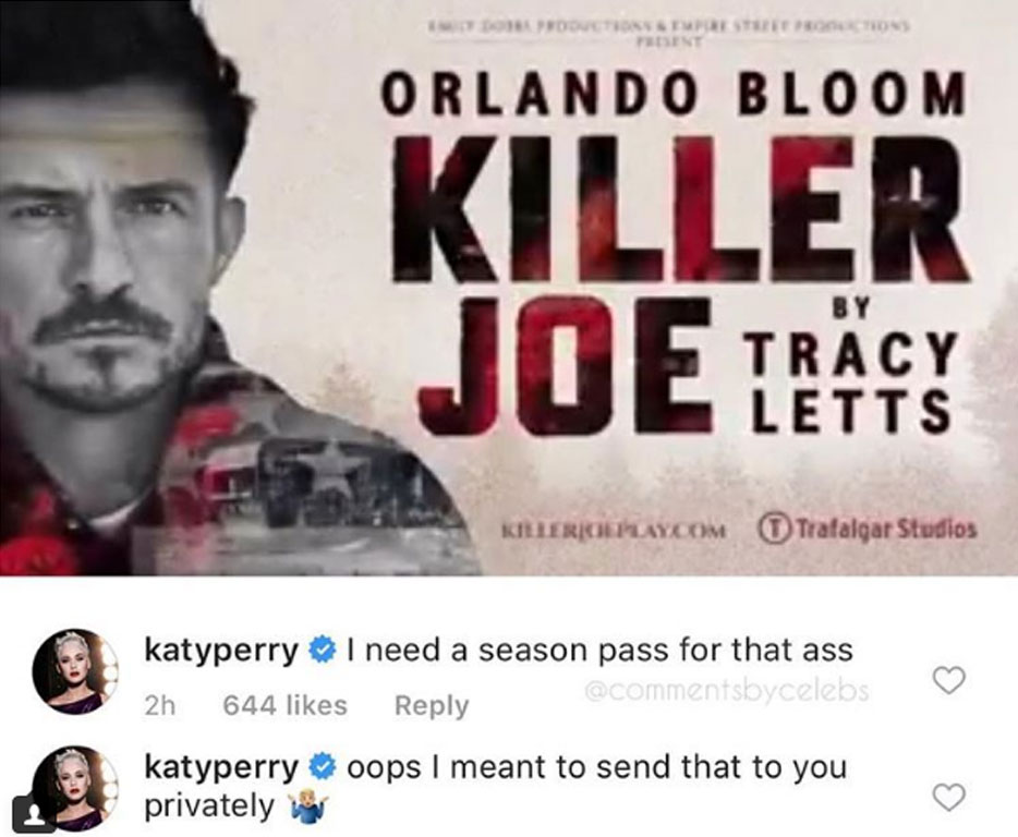 Katy aparentemente sem querer deixou um comentário bem safadinho no Instagram do namorado, e isso chamou atenção de milhares de pessoas.