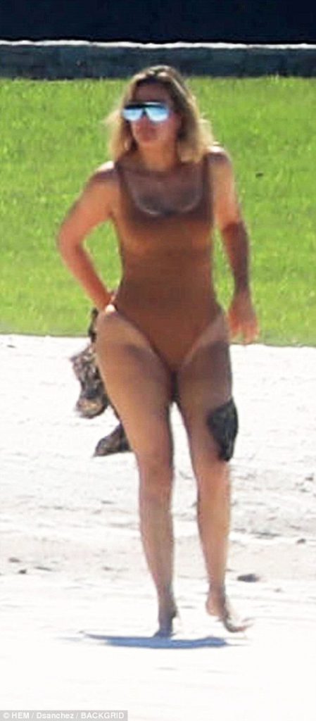 A estrela de TV de 34 anos foi clicada usando um maiô marrom e um par de óculos escuros espelhados. Ela usava o cabelo solto.