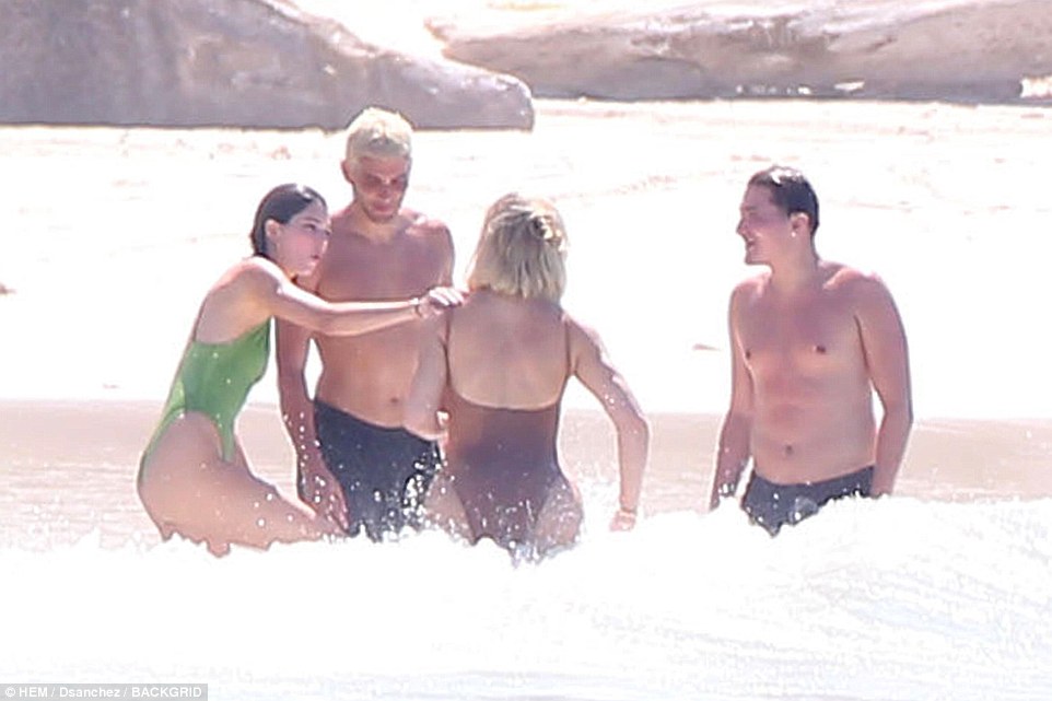 Khloe e Kendall foram vistas brincando na água com seus amigos.
