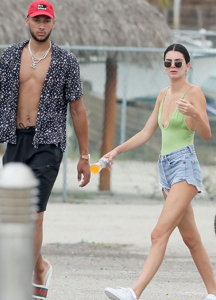 Kendall mostrou seu corpo tonificado em um maiô verde e parecia muito animada junto com o namorado Ben Simmons.
