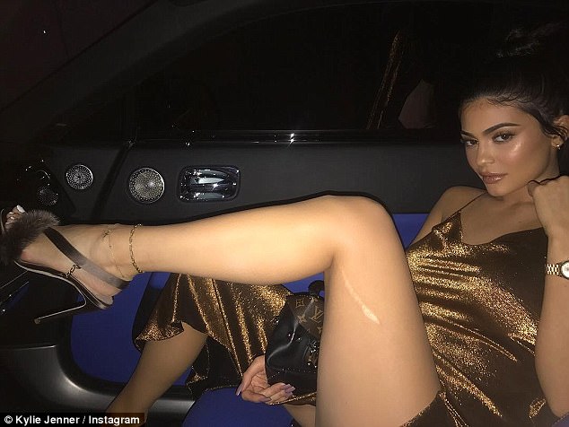 A marca em sua perna é claramente visível enquanto ela está posando com seu namorado Travis Scott para uma sessão de fotos da revista