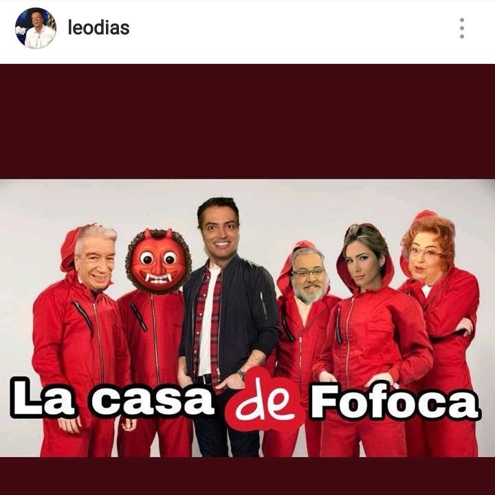 Na imagem, os rostos dos integrantes da bancada do Fofocalizando foram colocados no lugar dos personagens de La Casa de Papel, série da Netflix. No lugar do rosto de Mara, no entanto, foi usado um emoji de demônio.