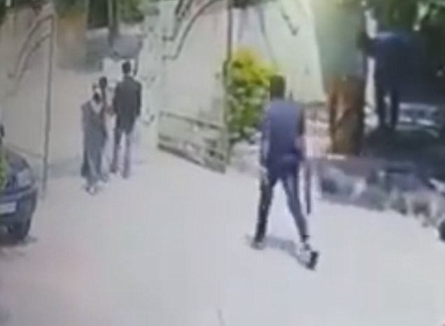 Um homem não identificado que estava seguindo o casal para fora do hospital foi capturado pelas câmeras de vigilância na rua. Ele estava andando atrás de Pranay com um facão, e então cortou-o na parte de trás do pescoço.