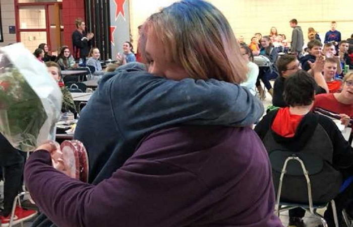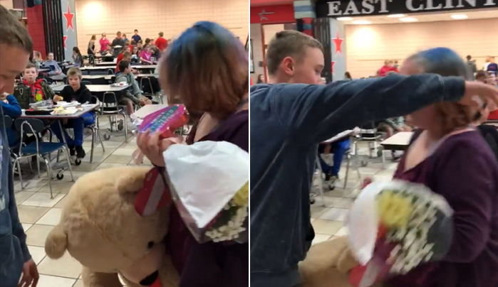 No último dia dos namorados, ele foi até o refeitório do colégio East Clinton Junior High.