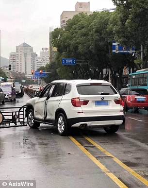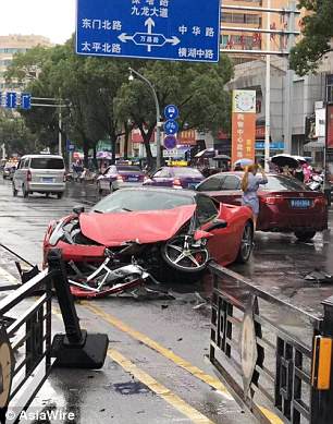 O motorista perde o controle e está atravessando a estrada, na cidade de Wenling, no leste da China. A Ferrari atinge uma BMW X3 branca depois de passar pela reserva central. A frente da Ferrari 458 foi completamente destruída e seus airbags foram acionados.