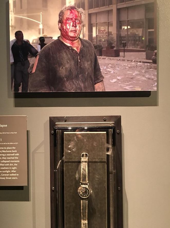 ”No 47º andar da Torre Norte”, disse o funcionário do museu. Seu nome era Thomas Canavan, um dos vinte sobreviventes do colapso. Uau. Ele começou a me contar sua história angustiante de ser enterrado vivo, rastejando por metros e metros gravemente ferido (mas não percebendo isso devido à adrenalina) e infelizmente tendo perdido amigos de longa data.