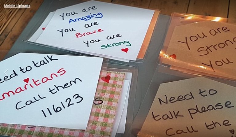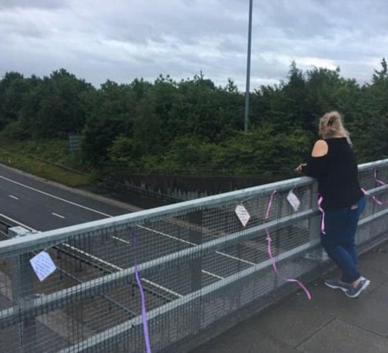 A mãe de dois filhos também diz que em uma das mensagens que recebeu, uma mulher elogiou suas notas de esperança, dizendo que quase se suicidou depois de dirigir às cinco da manhã na M60 à procura de uma ponte.