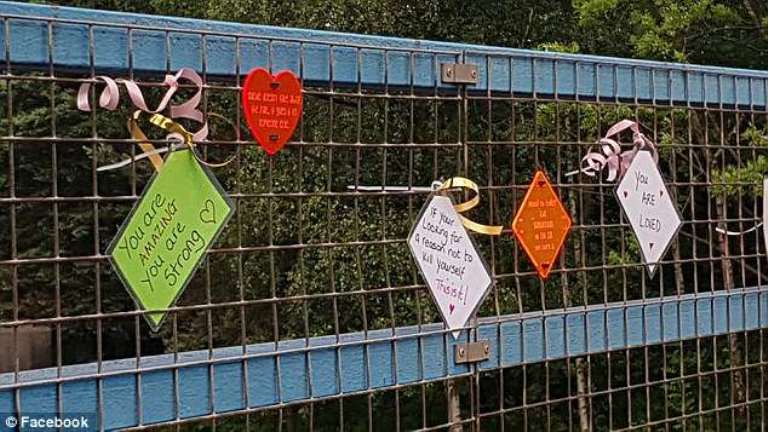 22 pontes estão agora adornadas com as mensagens laminadas em forma de diamante de Lisa. Ela está pedindo às autoridades que façam versões permanentes depois de ver que seus recados tem salvado a vida de muitas pessoas.