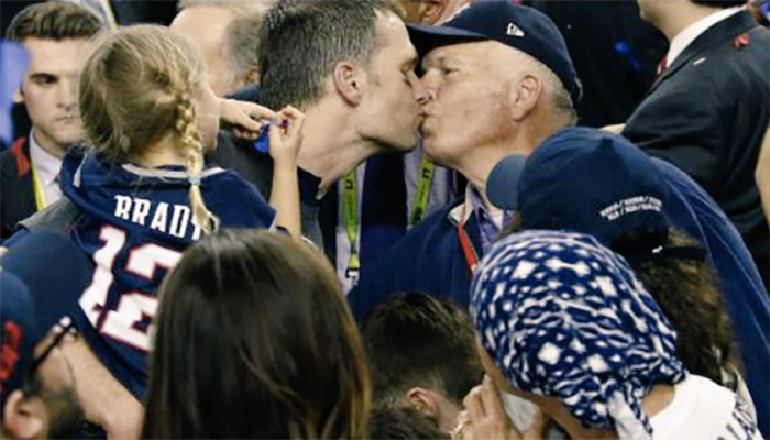 Poucos dias antes do jogo do campeonato do Super Bowl entre o New England Patriots e o Philadelphia Eagles, a Internet ficou polvorosa com a notícia sobre um vídeo mostrando o quarterback Tom Brady, do New England Patriots, beijando seu filho de 11 anos, Jack, duas vezes nos lábios.