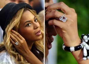Jay-Z pediu Beyoncé em casamento em 2008 com um anel da grife Lorraine Schwartz, que contém um diamante de 18 quilates.