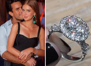 Marina Ruy Barbosa teve um anel feito especialmente para ela pela designer de joias Andrea Conti. Ele levou mais de uma semana para ficar pronto e tem 3,5 quilates de diamantes.