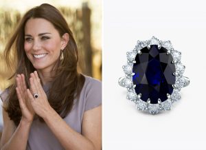 Um dos anéis de noivado mais bonitos do mundo é o da Kate Middleton. Ele pertenceu à princesa Diana e é todo de safira com diamantes, puro luxo!