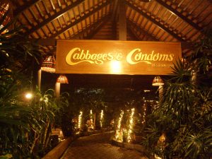 O Cabbages & Condoms já começa bizarro pelo nome (Repolhos & Preservativos). O que uma coisa tem a ver com a outra?