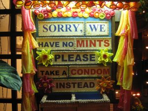 Na saída, por favor, não esqueça de levar uma camisinha junto. Proteção acima de tudo, né?