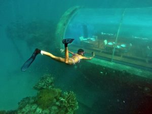 O restaurante Ithaa Undersea fica exatamente onde o nome sugere – debaixo d’água!