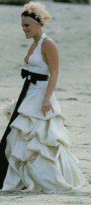 Primeiro que o vestido de casamento da Pink nem parece um vestido de noiva. Segundo que ele não seria bonito nem em uma festa comum, já que esses babados feios estragaram tudo…