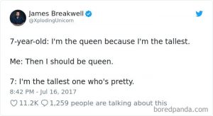 Filha de 7 anos: Eu sou a rainha, porque eu sou a mais alta.