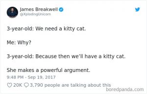 O site Boredpanda selecionou os 200 tweets mais engraçados desse pai, e nós separamos para vocês os 20 melhores! Prepare-se para rir bastante com a espontaneidade e inteligência dessas garotinhas: