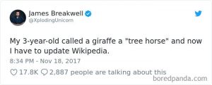Minha filha de 3 anos chamou uma girafa de “árvore cavalo” e agora eu preciso modificar a Wikipedia.