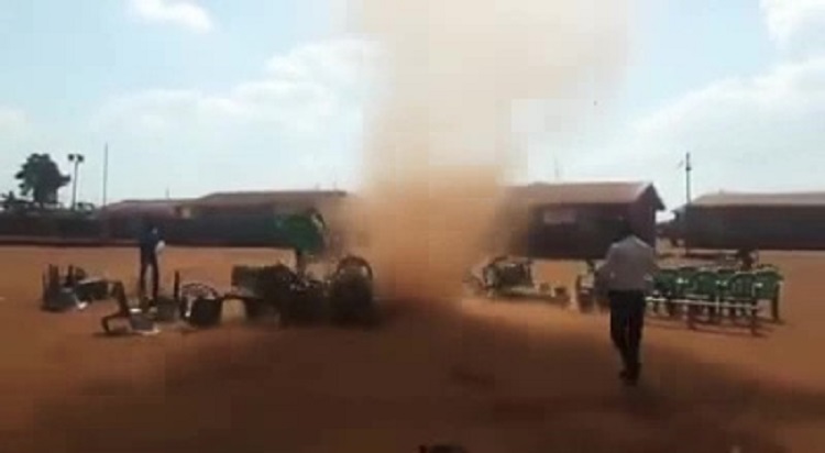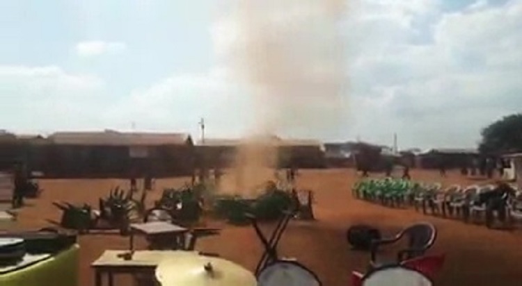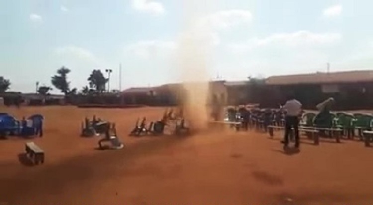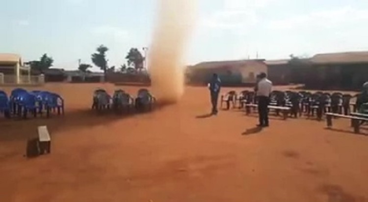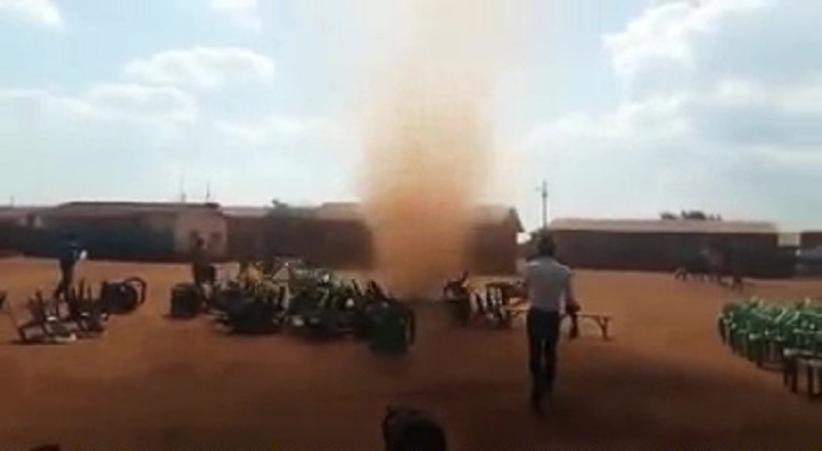 Imagens de vídeo capturam o momento em que um ‘diabo de poeira’ se formou no meio de uma pacata cidade africana e começou a causar estragos nas imediações.