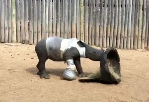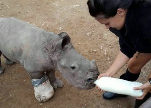 Mas, ele não saiu ileso. O bebê foi encontrado machucado nas costas e nos pés e com um dardo tranquilizante preso nas costas. Assim que foi visto nestas condições, ele foi transferido para o ‘Care for Wild Rhino’, um orfanato de rinocerontes próximo. Lá, seus ferimentos foram tratados.