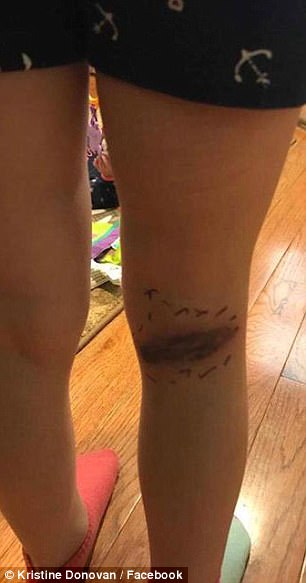 Foi aí que a sua mãe, Kristine, notou que ela tinha uma espécie de contusão na parte de trás do joelho. Embora ela tenha se assustado um pouco pela aparência do machucado, ela achou que se tratasse apenas de um golpe ou de uma picadinha de inseto.