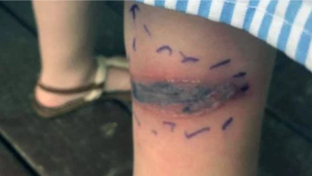 Chegando à sala de emergência, os médicos confirmaram que aquela mancha indicava algo sério. Descobriu-se que a menina havia sido picada por uma aranha e precisava de antibióticos para interromper a infecção.