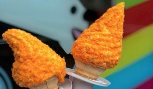 E, por falar em incomum, um novo sabor de sorvete por lá tem chamado muito a atenção: o “Cheat-Ohs”, que é nada mais, nada menos, do que um sorvete coberto com Cheetos! Isso mesmo, aquele salgadinho que as crianças adoram comer. Alguma vez você já pensou em provar algo como isso?