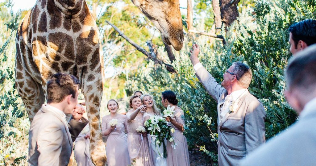 E por falar em penetras, algo inédito aconteceu em uma sessão de fotos para um casamento na África do Sul. Tristan e Luke Karshagen decidiram tirar fotos no dia da cerimônia, já que o dia estava muito bonito e a atmosfera da festa estava ótima. Porém, eles não esperavam que um convidado muito especial fosse aparecer: uma girafa.