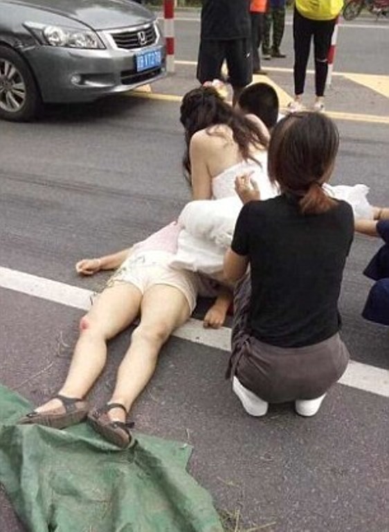Xie Dan, uma enfermeira chinesa, tentou salvar a aposentada depois de ver um acidente de trânsito a caminho para tirar fotos de casamento.