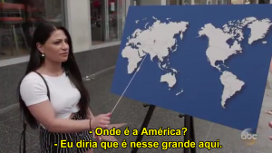 Um chocante vídeo que está circulando pela internet nos últimos dias mostra uma entrevista de rua realizada pelo canal de televisão abc (American Broadcasting Company), onde os participantes precisam apontar países em um Mapa-múndi.