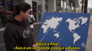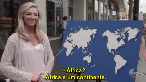 Na entrevista de rua, as pessoas devem apontar pelo menos 1 país no mapa. A grande maioria dos entrevistados apontou direto para a África, mas a África não é um país, é um continente. Ao saber disso, nenhum deles conseguiu dizer sequer o nome de um país desse continente.