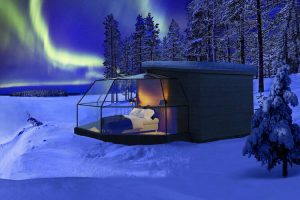 O Arctic Fox Igloos fica na Lapônia finlandesa, um dos locais com a maior chance de se observar o fenômeno. Os belos iglus com teto de vidro ainda ficam nas margens do Lago Ranuanjärvi, que também brinda os hóspedes com um cenário maravilhoso durante o dia. Quem decidir aproveitar um pouco dessa magia, ainda pode passear de trenó e fazer safáris na neve.